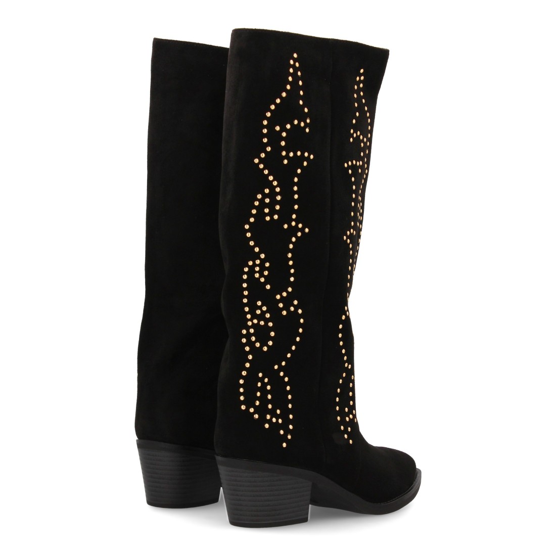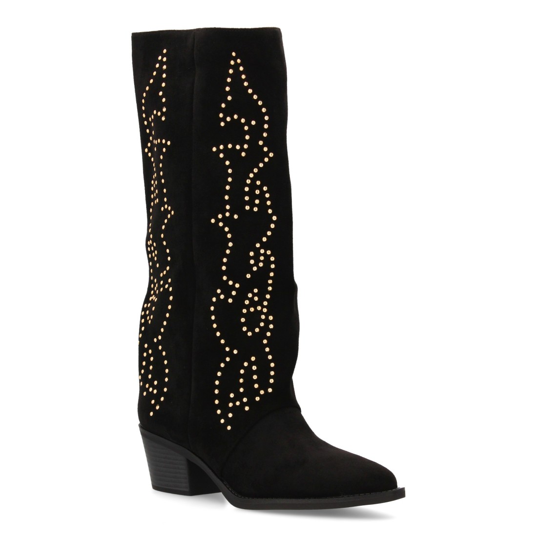 Bota alta con diseño de tachuelas y tacon