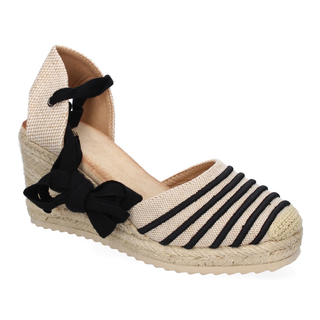 Sandalia de Mujer con Cuña de Yute, Comodas y Elegantes, Diseño Moderno con Cintas