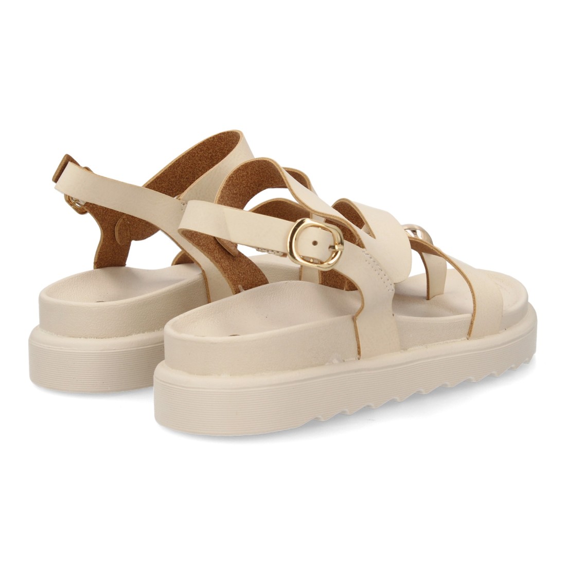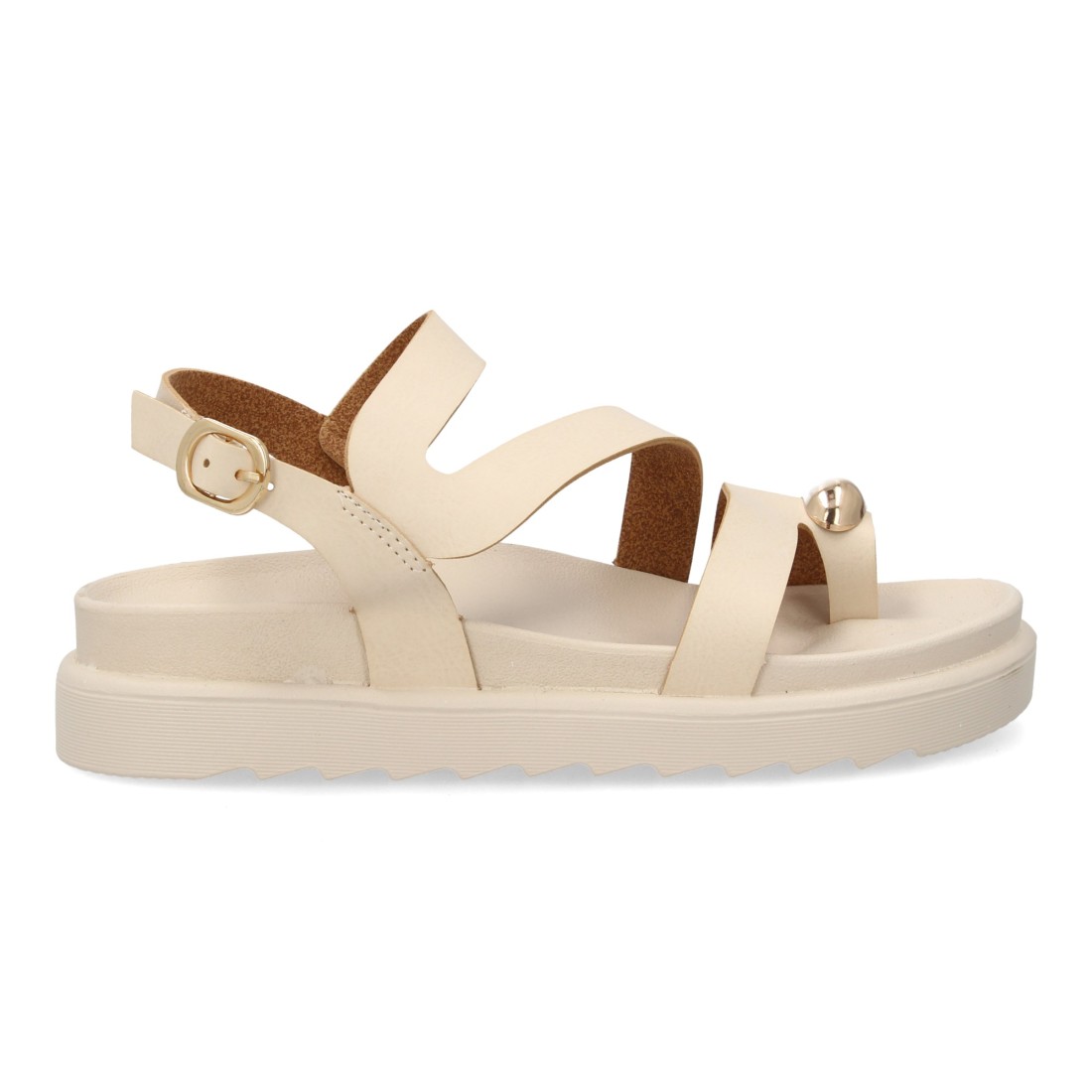 Sandalias cómodas de tiras mujer con adorno metálico.