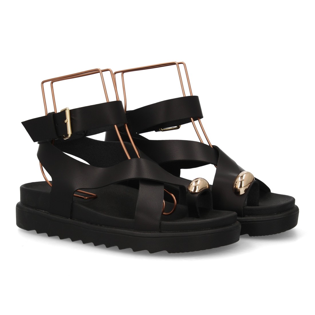 Sandalias cómodas de tiras mujer con adorno metálico.