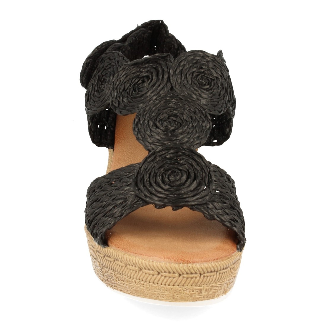 Sandalia de Cuña con Pala de Rafia y Cierre de Velcro