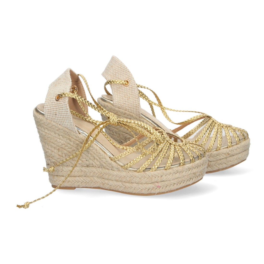 Sandalias de Cuña con Cordones Anudables al tobillo