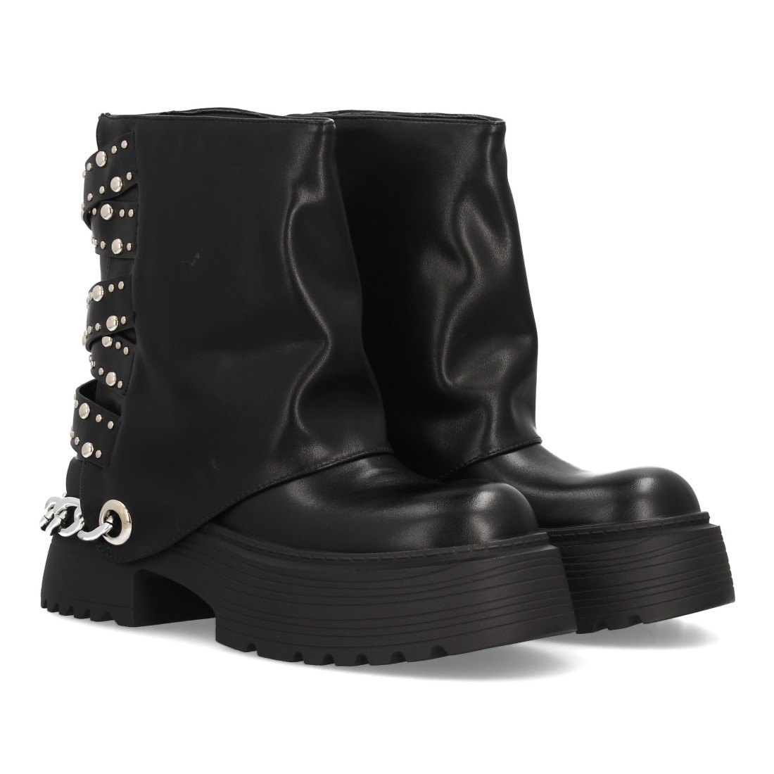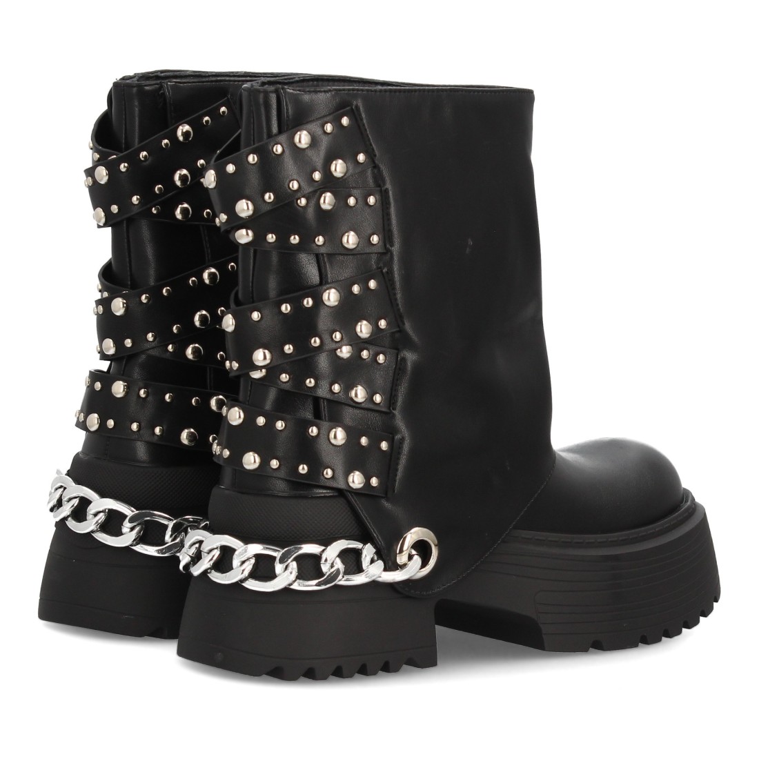 Botín de plataforma con cadena y tachuelas