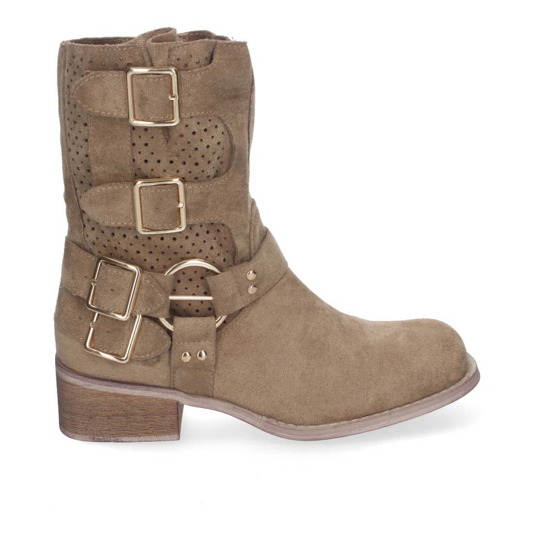Botines de Mujer con Tacón Bajo y Adornos de Hebillas