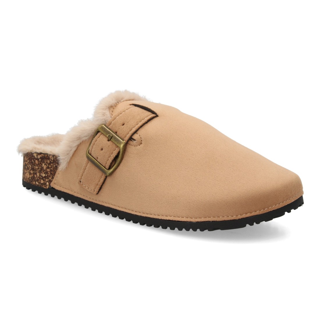 Zueco forrado cálido con hebilla para mujer