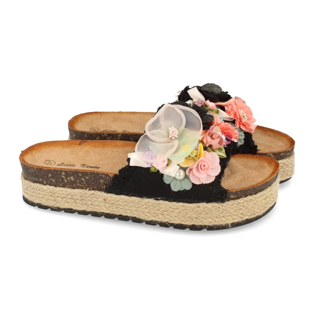 Sandalia con Plataforma de Yute y Adorno de Flores
