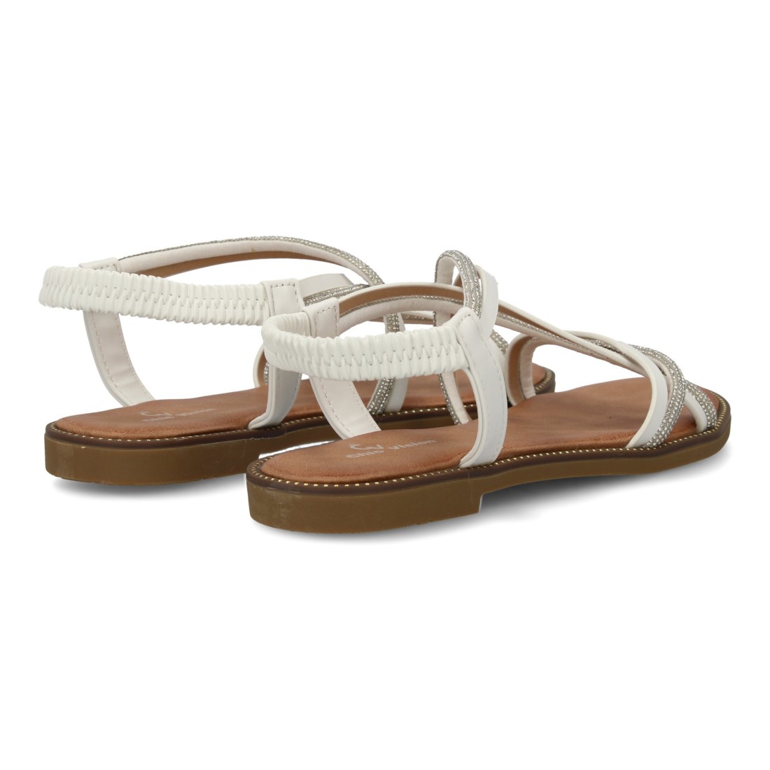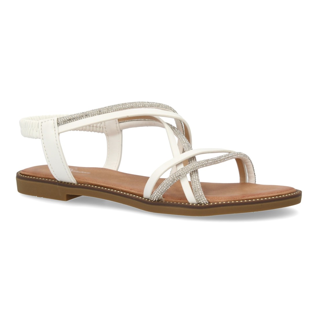 Sandalias planas para mujer, comodas elegantes con brillantes, diseño moderno