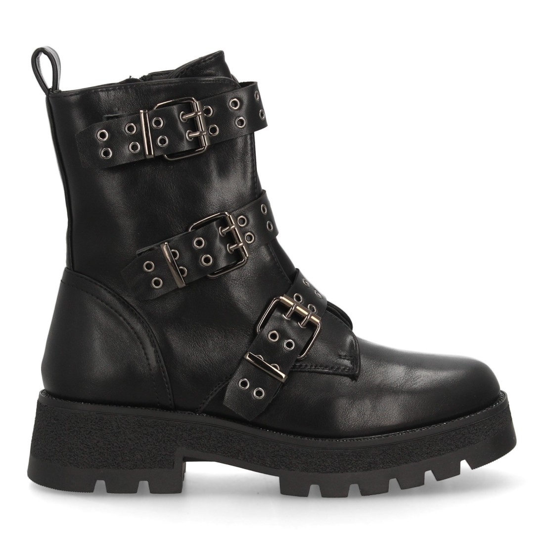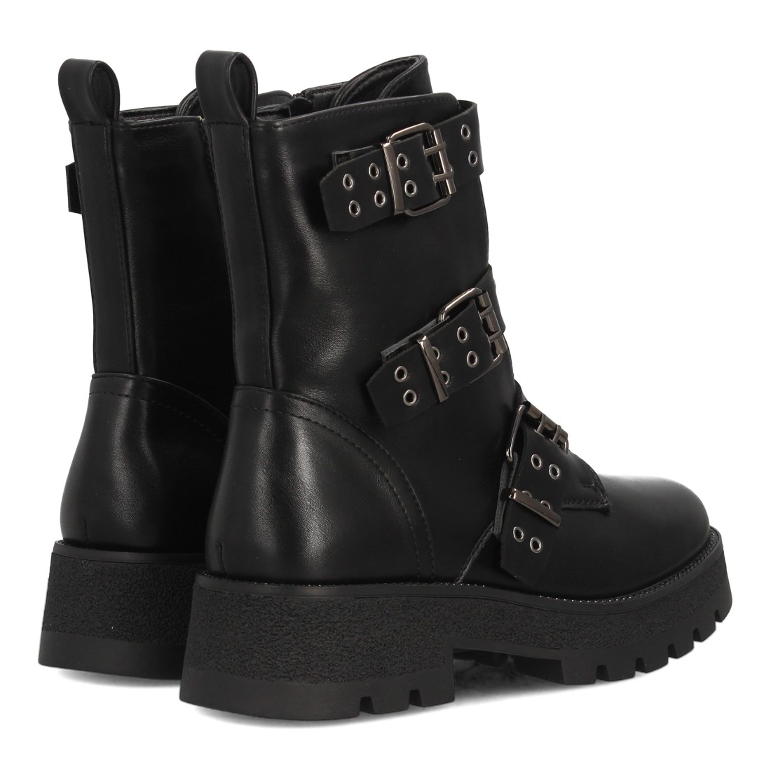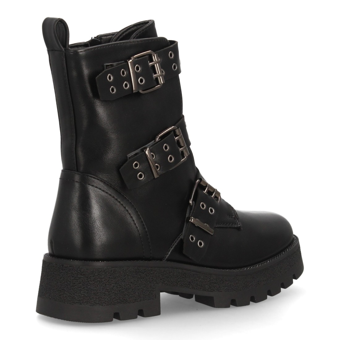 Bota militar con hebillas y tachuelas decorativas