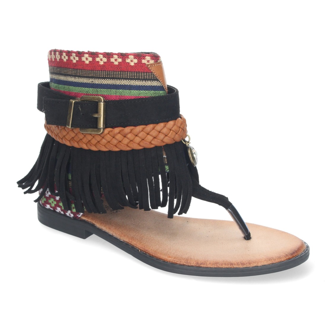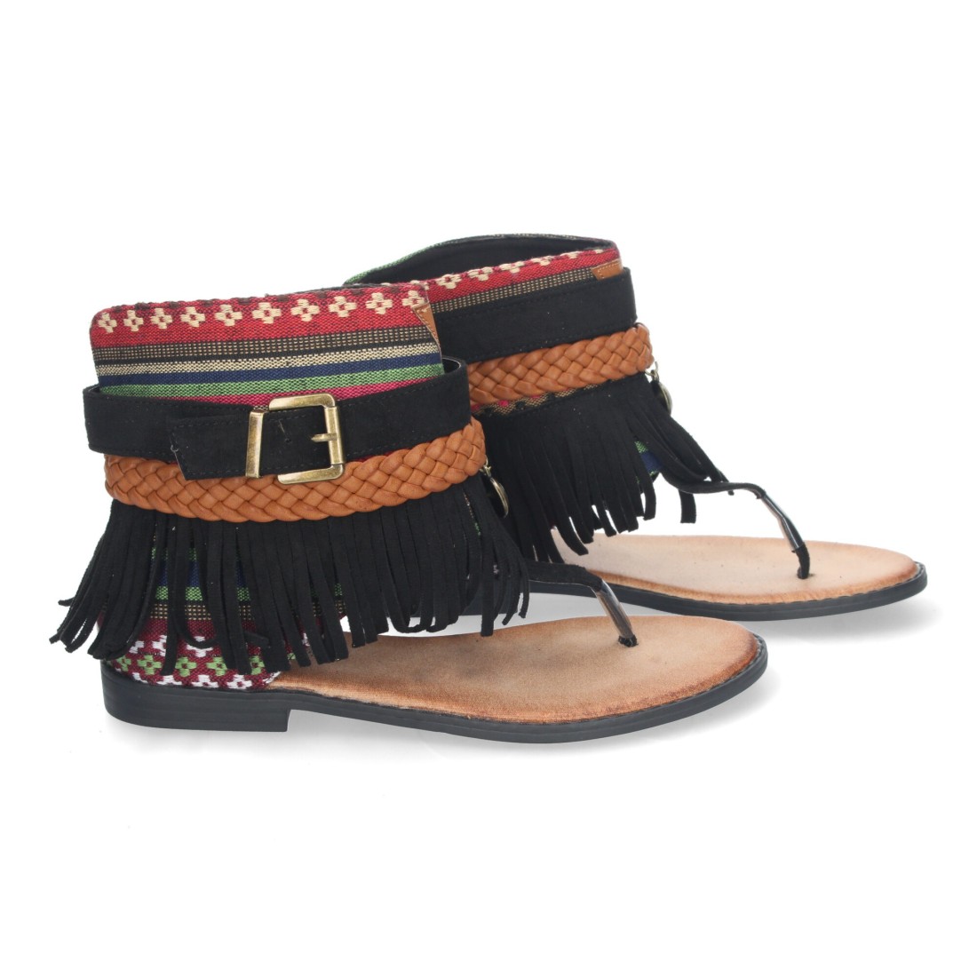 Sandalia Plana para Mujer, con Flecos, Detalles Bohemios