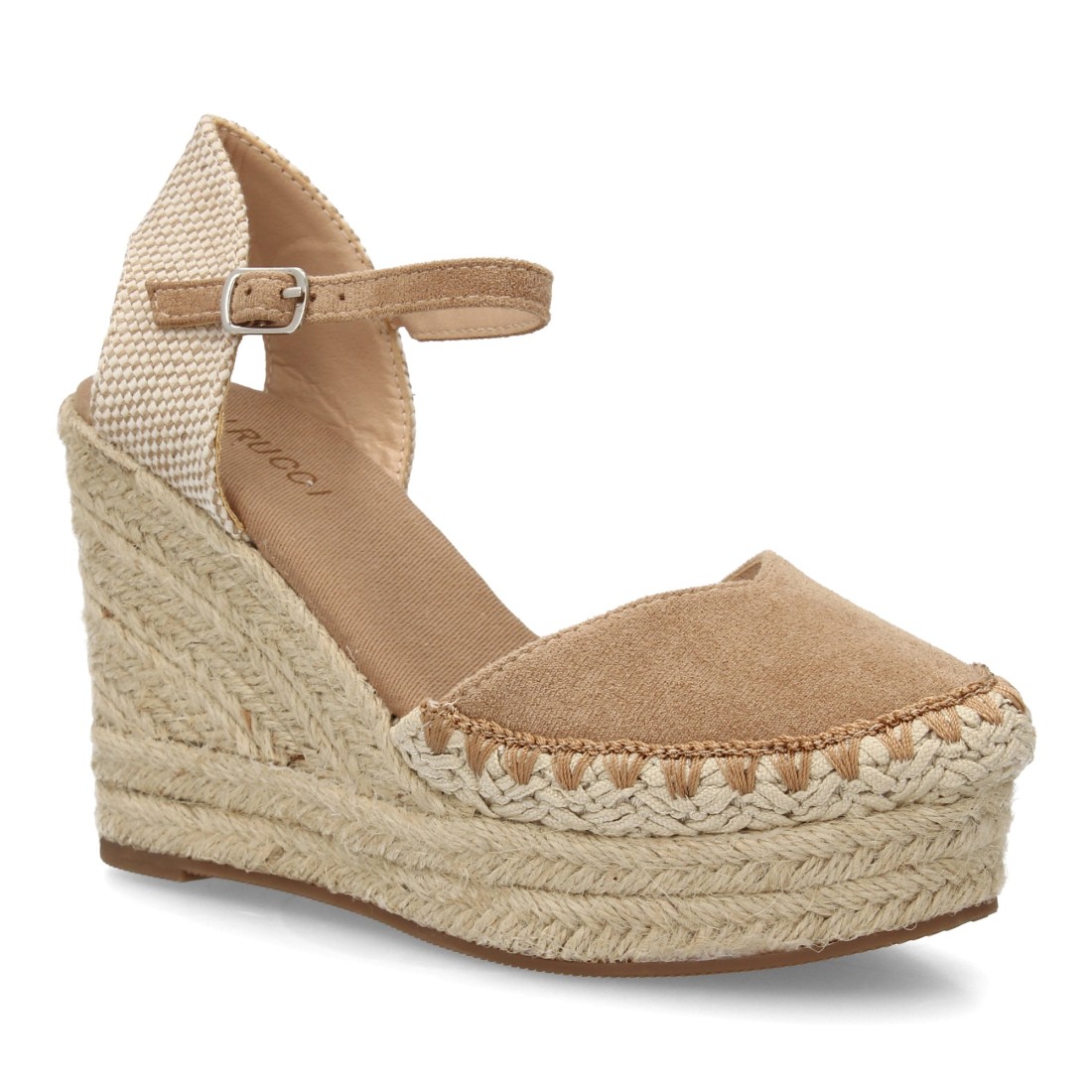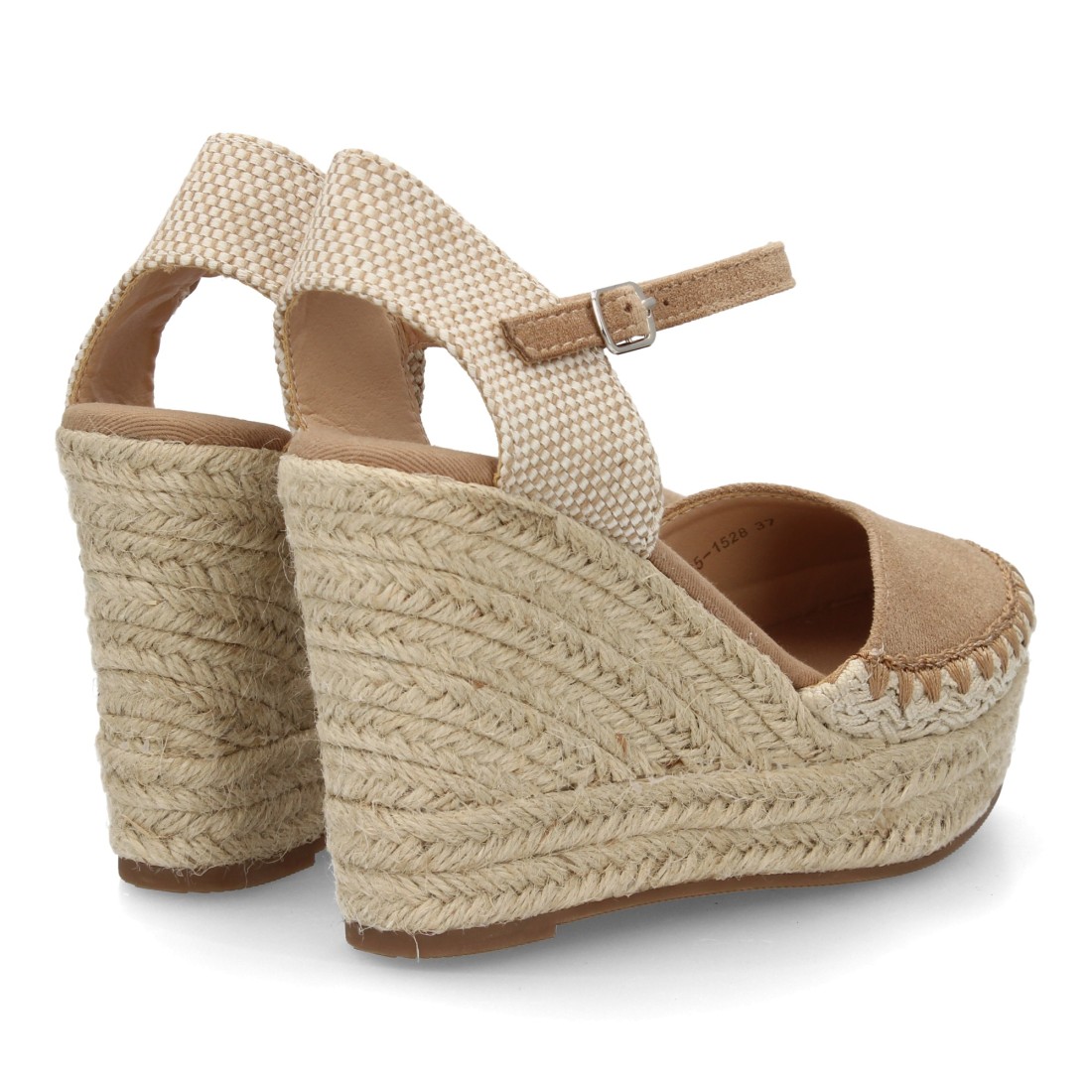 Alpargata de cuña alta de esparto con cierre de hebilla