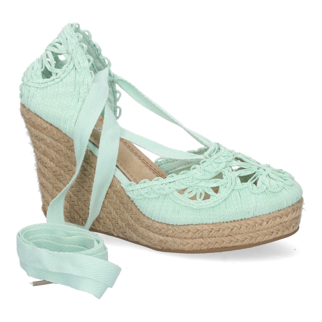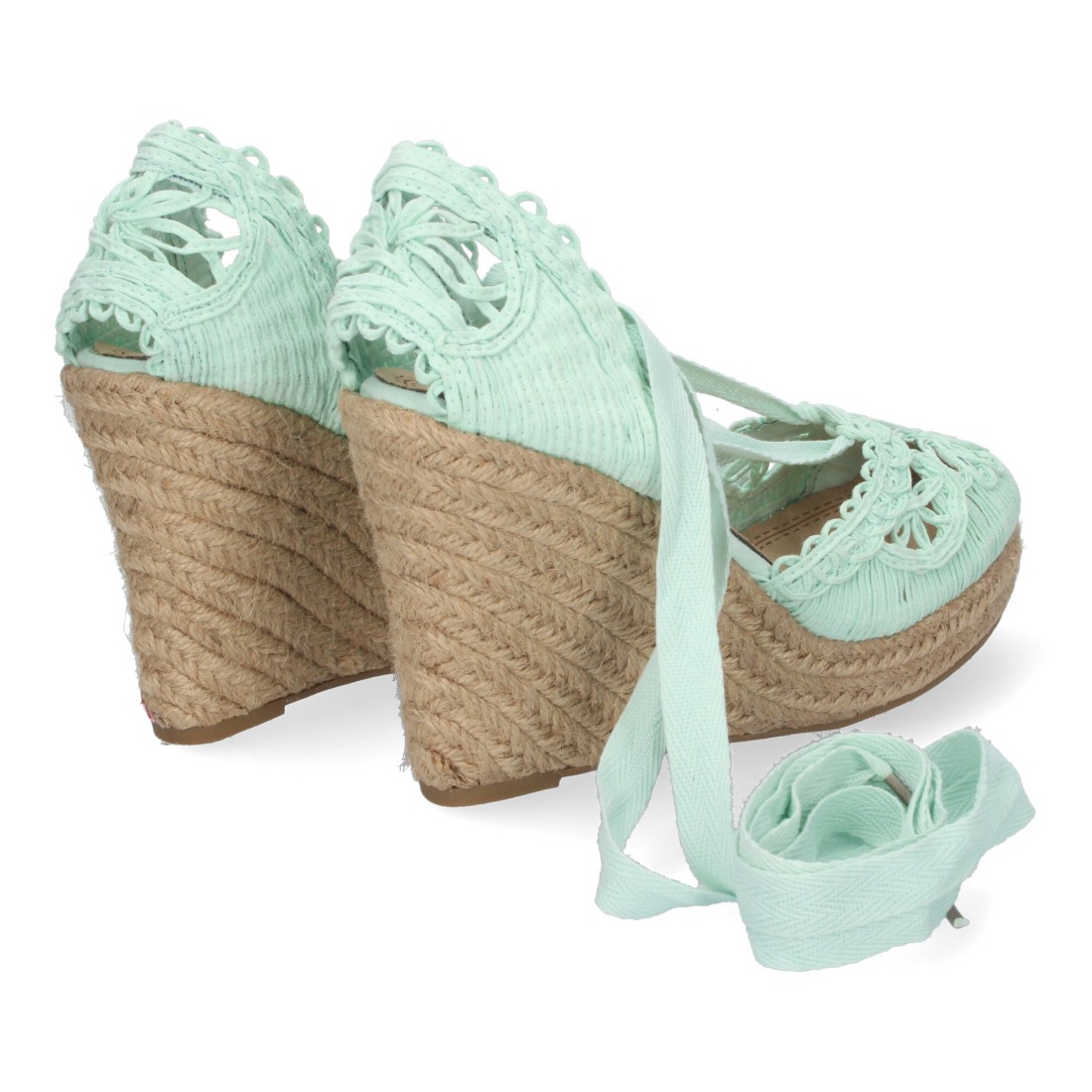 Sandalia de Cuña con Yute, Estilo Valenciana, Pala con Tiras Cosidas