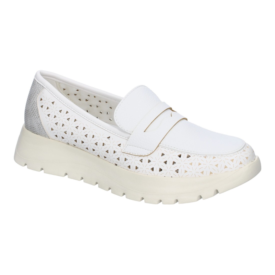 Mocasin Plano de Mujer, Comodo y Ligero, Diseño Calado, Suela Dentada y Adorno en la Pala