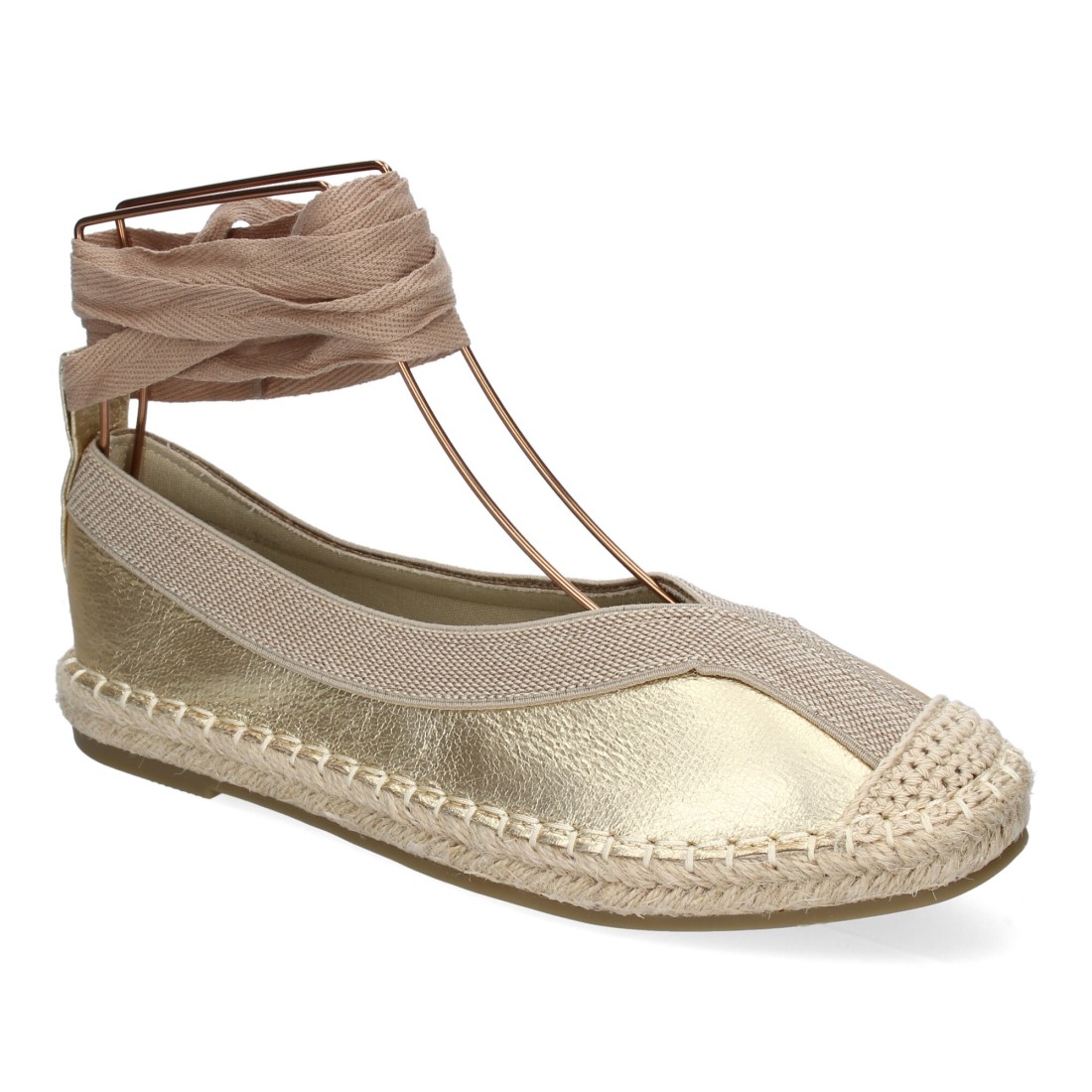 Bailarina de Mujer con Yute, Diseño Moderno con Puntera Bordada y Cintas