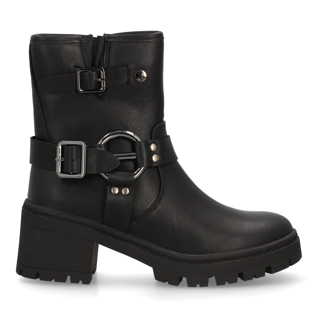 Botín biker con doble hebilla decorativa