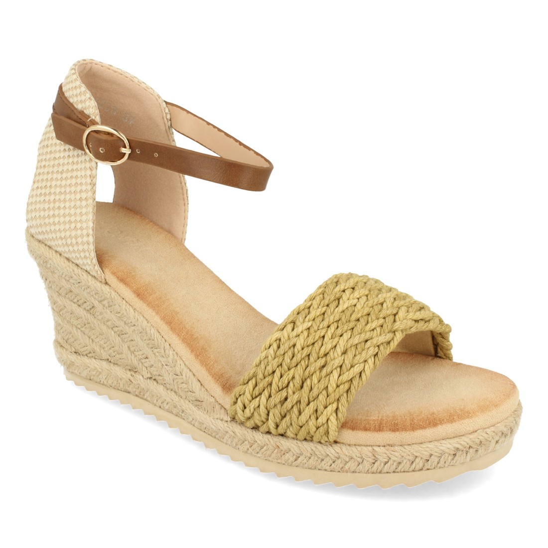 Sandalia de Cuña con Pala Rafia y Hebilla