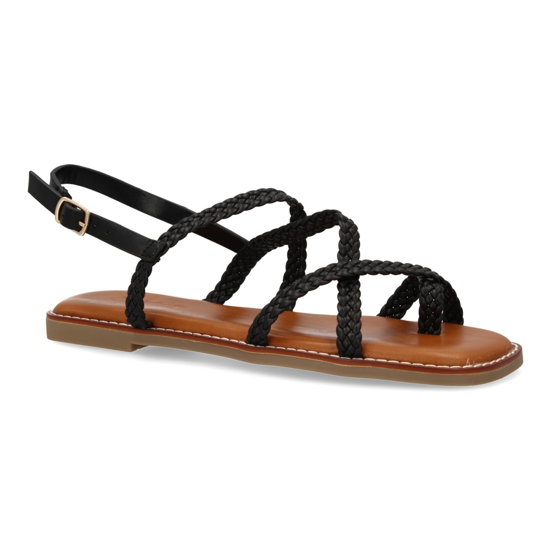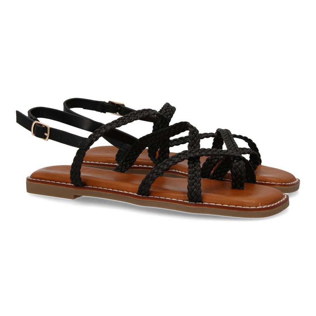 Sandalias planas de mujer, elegantes y comodas, diseño trenzado con cierre de hebilla ajustables