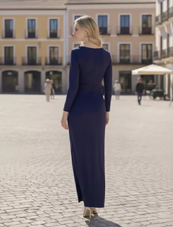 • Silueta de Infarto: Este vestido largo de corte slim se ajusta a la figura de forma impecable, resaltando las curvas con una delicadeza absoluta. La manga larga le aporta ese aire aristocrático y formal ideal para cualquier evento de etiqueta.