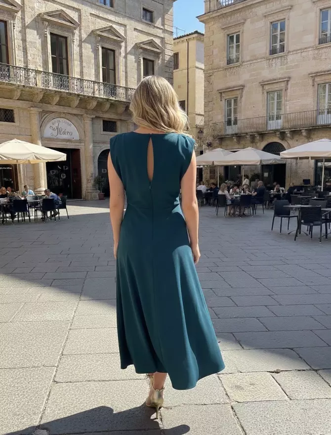 • Caída fluida: Tras ajustar sutilmente en la cadera, el diseño abre en un ligero vuelo que aporta un movimiento muy elegante y natural al caminar.